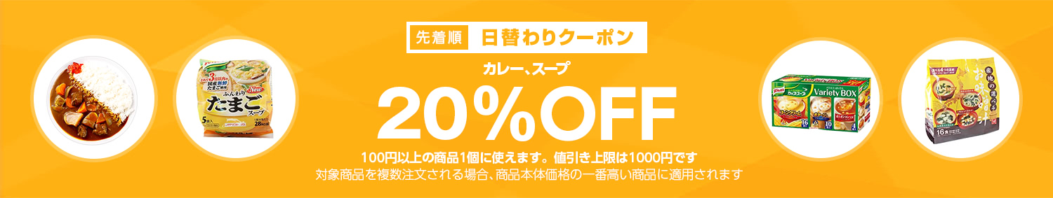 Yahoo!ショッピングで 【カレー、スープカテゴリで使える20%OFFクーポン】 が開催中です。