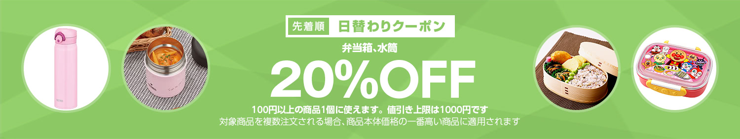 Yahoo!ショッピングで 【弁当箱、水筒カテゴリで使える20%OFFクーポン】 が開催中です。