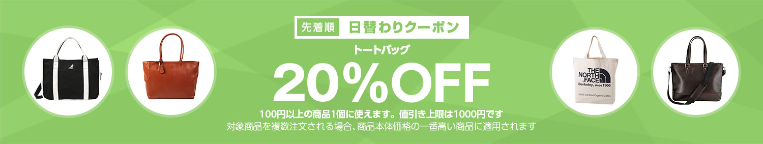 Yahoo!ショッピングで 【トートバッグカテゴリで使える20%OFFクーポン】 が開催中です。