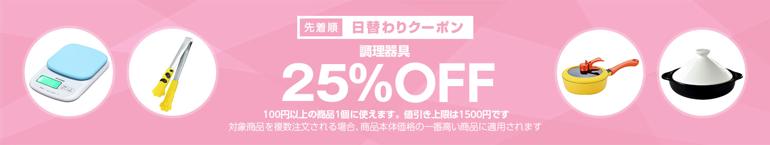 Yahoo!ショッピングで 【調理器具カテゴリで使える25%OFFクーポン】 が開催中です。