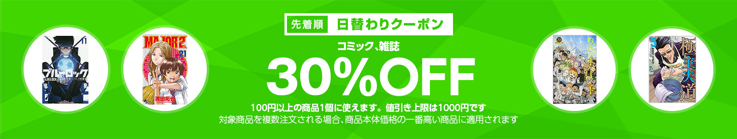Yahoo!ショッピングで 【コミック、雑誌カテゴリで使える30%OFFクーポン】 が開催中です。