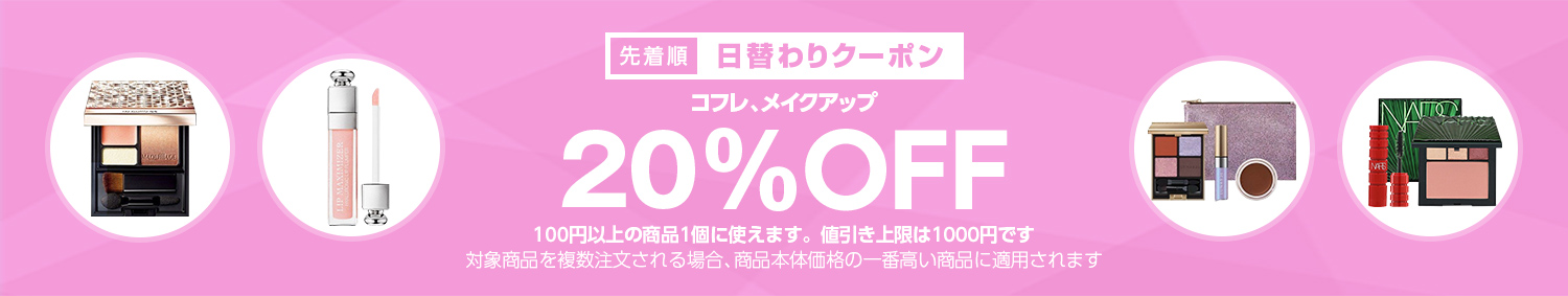 Yahoo!ショッピングで 【コフレ、メイクアップカテゴリで使える20%OFFクーポン】 が開催中です。