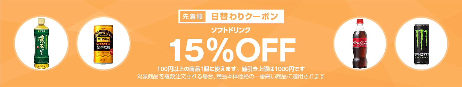 Yahoo!ショッピングで 【ソフトドリンクカテゴリで使える15%OFFクーポン】 が開催中です。