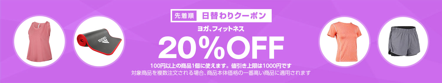 Yahoo!ショッピングで 【ヨガ、フィットネスカテゴリで使える20%OFFクーポン】 が開催中です。