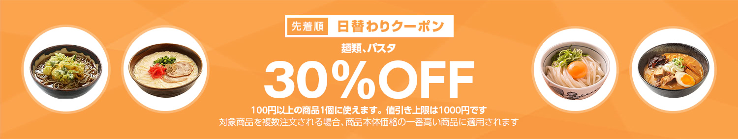 Yahoo!ショッピングで 【麺類、パスタカテゴリで使える30%OFFクーポン】 が開催中です。