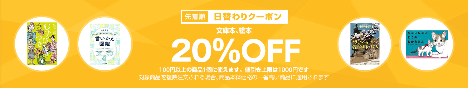 Amazon.co.jpで 【文庫本、絵本カテゴリで使える20%OFFクーポン】 が開催中です。