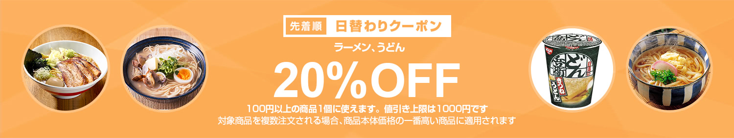 Yahoo!ショッピングで 【ラーメン、うどんカテゴリで使える20%OFFクーポン】 が開催中です。