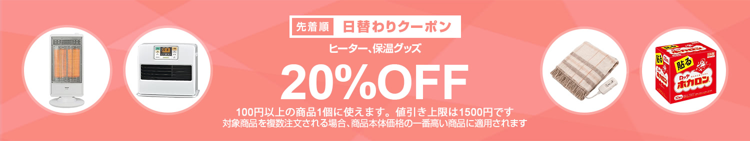 Yahoo!ショッピングで 【ヒーター、保温グッズカテゴリで使える20%OFFクーポン】 が開催中です。