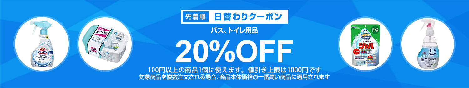 Yahoo!ショッピングで 【バス、トイレ用品カテゴリで使える20%OFFクーポン】 が開催中です。
