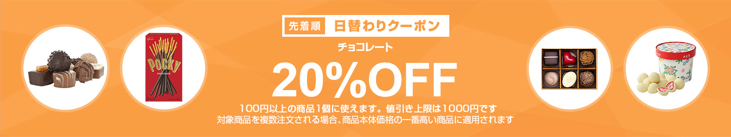 Yahoo!ショッピングで 【チョコレートカテゴリで使える20%OFFクーポン】 が開催中です。