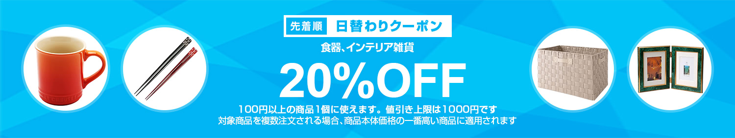 Yahoo!ショッピングで 【食器、インテリア雑貨カテゴリで使える20%OFFクーポン】 が開催中です。