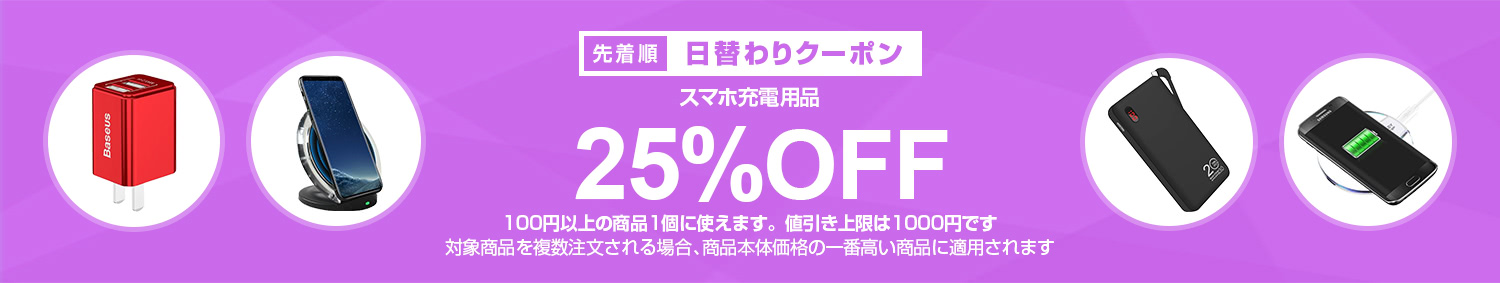 Yahoo!ショッピングで 【スマホ充電用品カテゴリで使える25%OFFクーポン】 が開催中です。