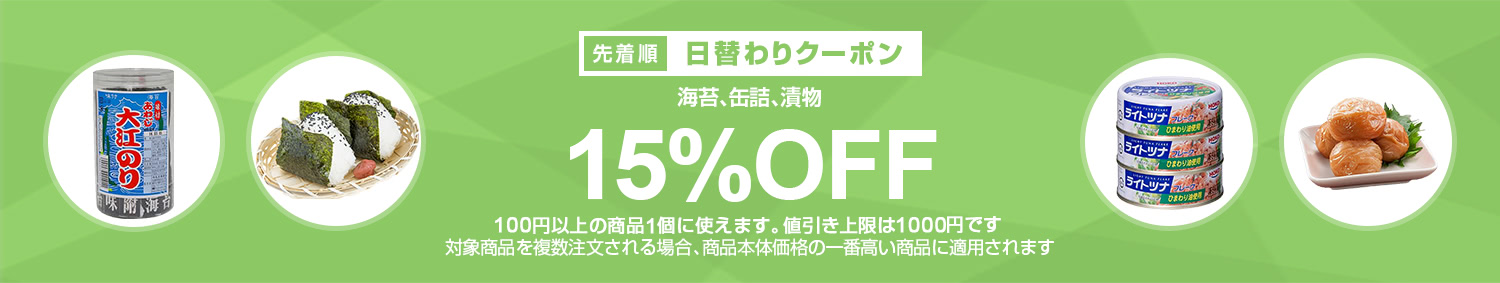 Yahoo!ショッピングで 【海苔、缶詰、漬物カテゴリで使える15%OFFクーポン】 が開催中です。