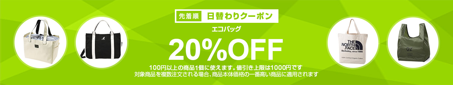 Yahoo!ショッピングで 【エコバッグカテゴリで使える20%OFFクーポン】 が開催中です。