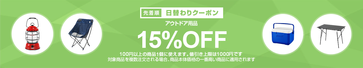 Yahoo!ショッピングで 【アウトドア用品カテゴリで使える15%OFFクーポン】 が開催中です。