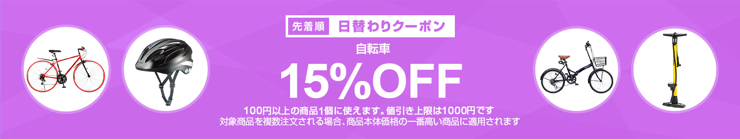 Yahoo!ショッピングで 【自転車カテゴリで使える15%OFFクーポン】 が開催中です。