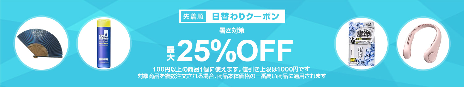 Yahoo!ショッピングで 【暑さ対策カテゴリで使える最大25%OFFクーポン】 が開催中です。