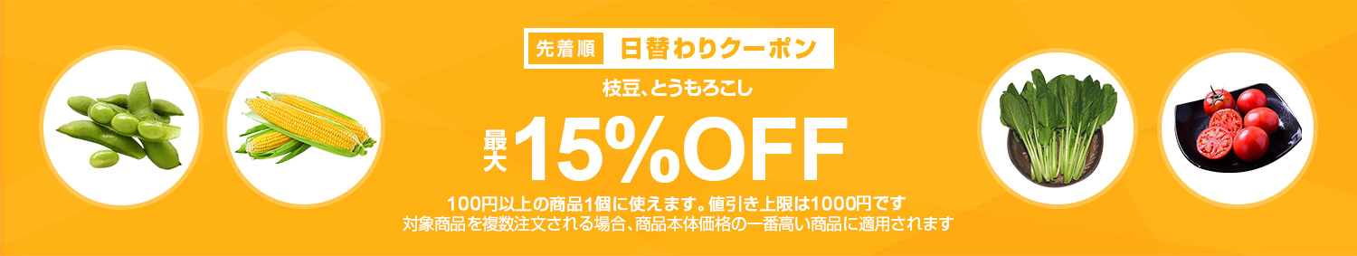 Yahoo!ショッピングで 【枝豆、とうもろこしカテゴリで使える最大15%OFFクーポン】 が開催中です。