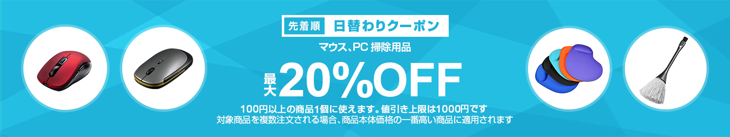 Yahoo!ショッピングで 【マウス、PC掃除用品カテゴリで使える最大20%OFFクーポン】 が開催中です。