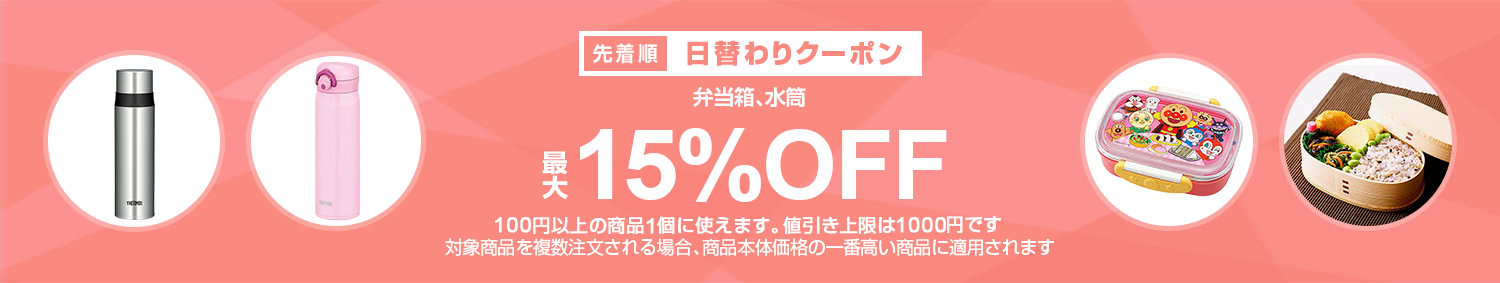 Yahoo!ショッピングで 【弁当箱、水筒カテゴリで使える最大15%OFFクーポン】 が開催中です。