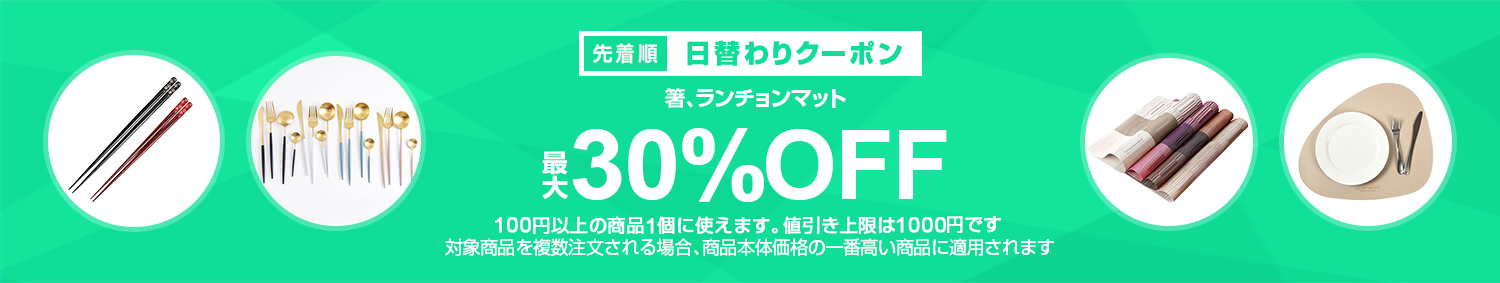 Yahoo!ショッピングで 【箸、ランチョンマットカテゴリで使える最大30%OFFクーポン】 が開催中です。