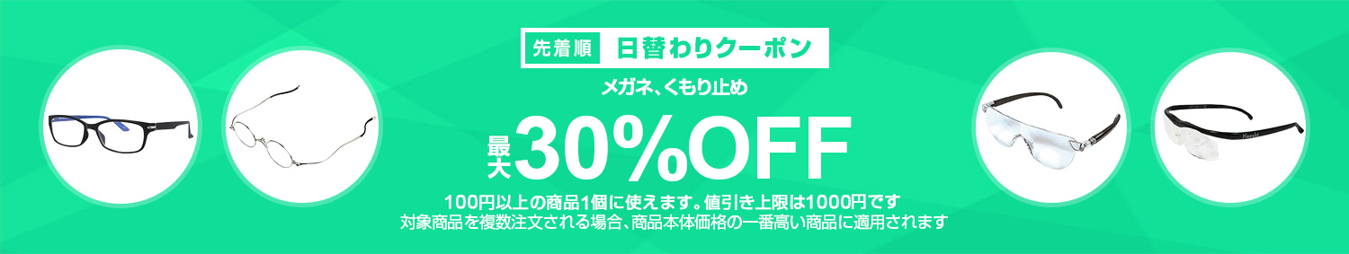 Yahoo!ショッピングで 【メガネ、くもり止めカテゴリで使える最大30%OFFクーポン】 が開催中です。