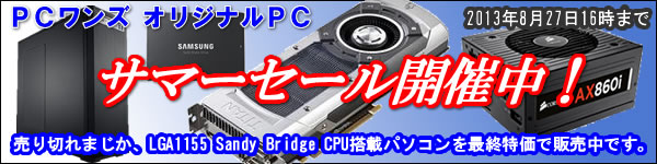 PCワンズで 「サマーセール 2013」 が開催中です。
