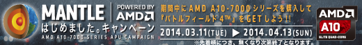 AMD A10-7000シリーズ購入後にフォームから応募すると、先着でバトルフィールド4がもらえます。