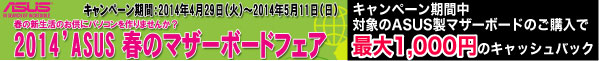 「2014年ASUS春のマザーボードフェア」 が開催中です。