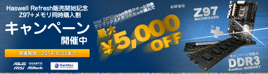 「サンマックスメモリ同時購入割キャンペーン」 が開催中です。