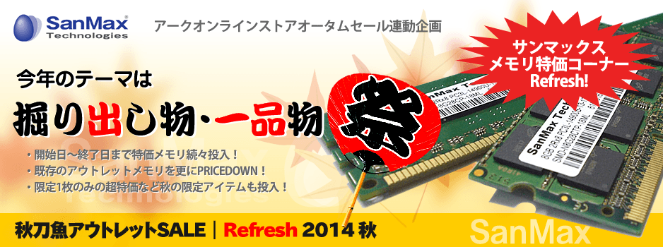「サンマックスメモリー 秋のRefreshセール2014」 が開催中です。