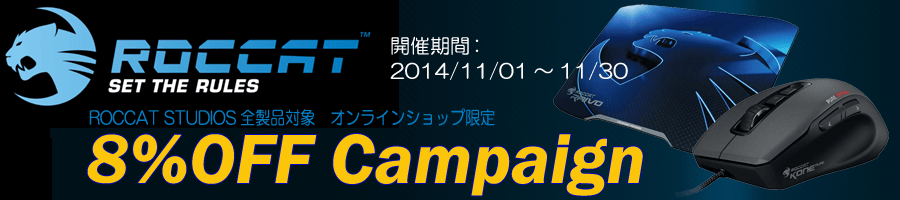 「ROCCAT STUDIOS 8%OFFキャンペーン」 が開催中です。