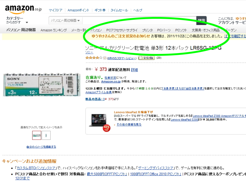 SONYの単3形乾電池 「LR6SG-12PG」 が特価販売中です。 環境に配慮したアルカリ乾電池の12本パックです。 価格:373円(送料無料) 価格比較 楽天検索 Amazon ヤフオク YouTube続きを読む ⇒ 最新特価はこちら(人気ブログランキング)